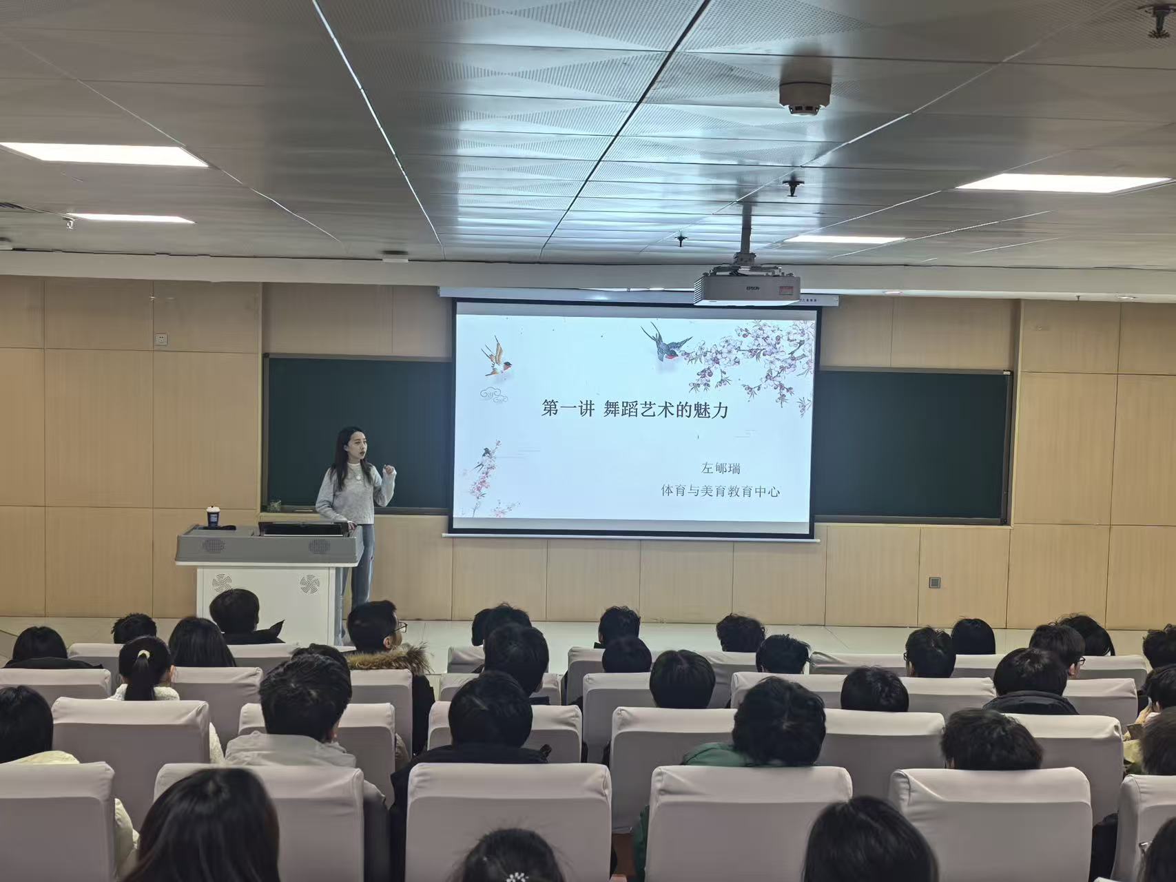 随后为展现舞蹈之美,左老师用生动比喻解析不同舞种特质:芭蕾如“钢笔书法”重线条,中国古典舞似“水墨画卷”藏东方韵味,现代舞是“跌倒与复起的艺术”,街舞为“人体几何实验”,拉丁舞为“力量与平衡之美”,中国民族民间舞是“风情散文集”,全方位呈现了舞蹈艺术的多元魅力;最后在鉴赏方法板块,左老师拆解舞蹈形象性、感染性等五大审美特征,并给出“参与实践、学习理论、大量观赏”的鉴赏能力培养建议,寄语学生以艺术眼光与心灵感受舞蹈之美。