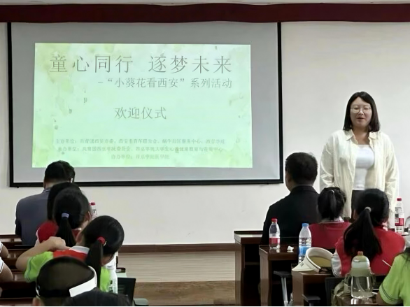 本次“小葵花”看西安活动在多方支持下圆满开展。团市委统战部副部长张育铭、西安市蜗牛社区服务中心张军、共青团西京学院团委书记王英博、西京学院医学院党委书记兼副院长马璐等领导嘉宾莅临现场。活动由马璐书记主持,张育铭老师在致辞中寄语孩子们拓宽视野、向阳成长。楼观镇中心学校少先队辅导员葛瑶真挚致谢,表达对活动的认可与期待。