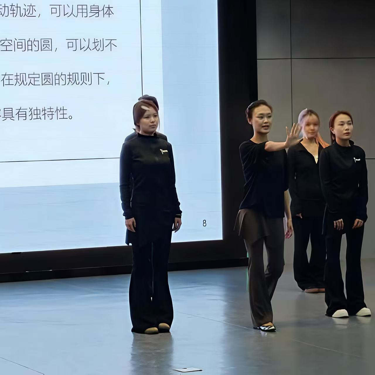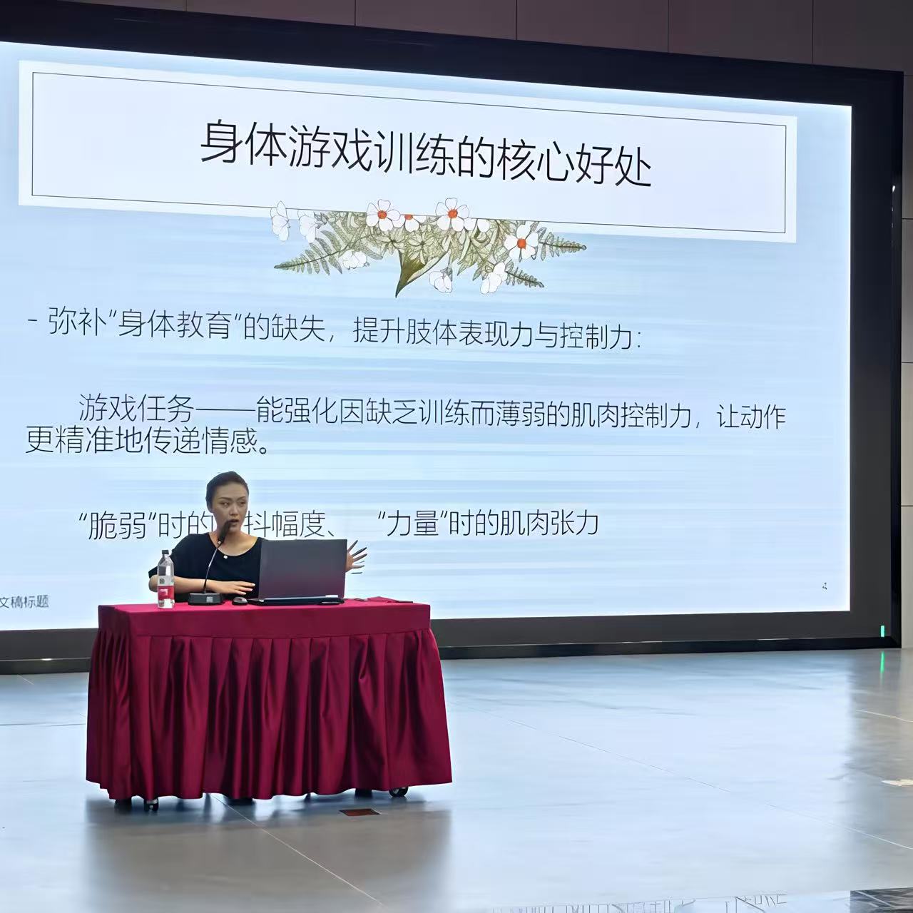 从游戏到创作:揭秘编创转化的核心逻辑。在深入探讨环节,主讲人详细阐述了从身体游戏到舞蹈编创的转化过程。她介绍了动作采集、规则设计和故事串联这三个关键步骤,并通过具体案例进行演示。“我们可以先通过无目的的身体摆动采集素材,然后为游戏设定规则,比如限制动作部位或幅度,这种限制往往能激发出意想不到的创意。”主讲人现场展示了如何将“用身体画字母”的游戏转化为一段富有节奏感的舞蹈短句,让参与者直观感受到创意转化的奇妙过程。